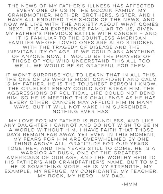 Statement regarding my father @SenJohnMcCain:
